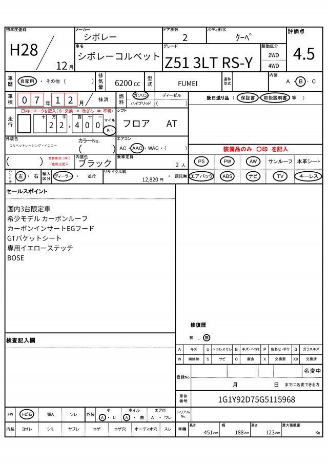 VIN/Serial No. 1G1Y92D75G5115968