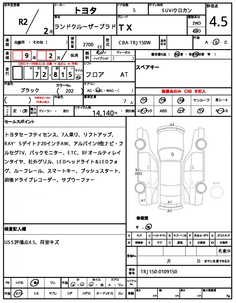 | VIN/Serial No. | TRJ150-0109150 |