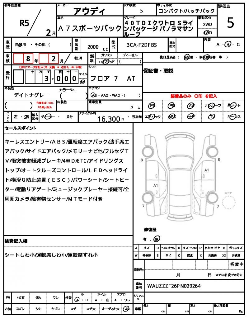 | VIN/Serial No. | WAUZZZF26PN029264 |