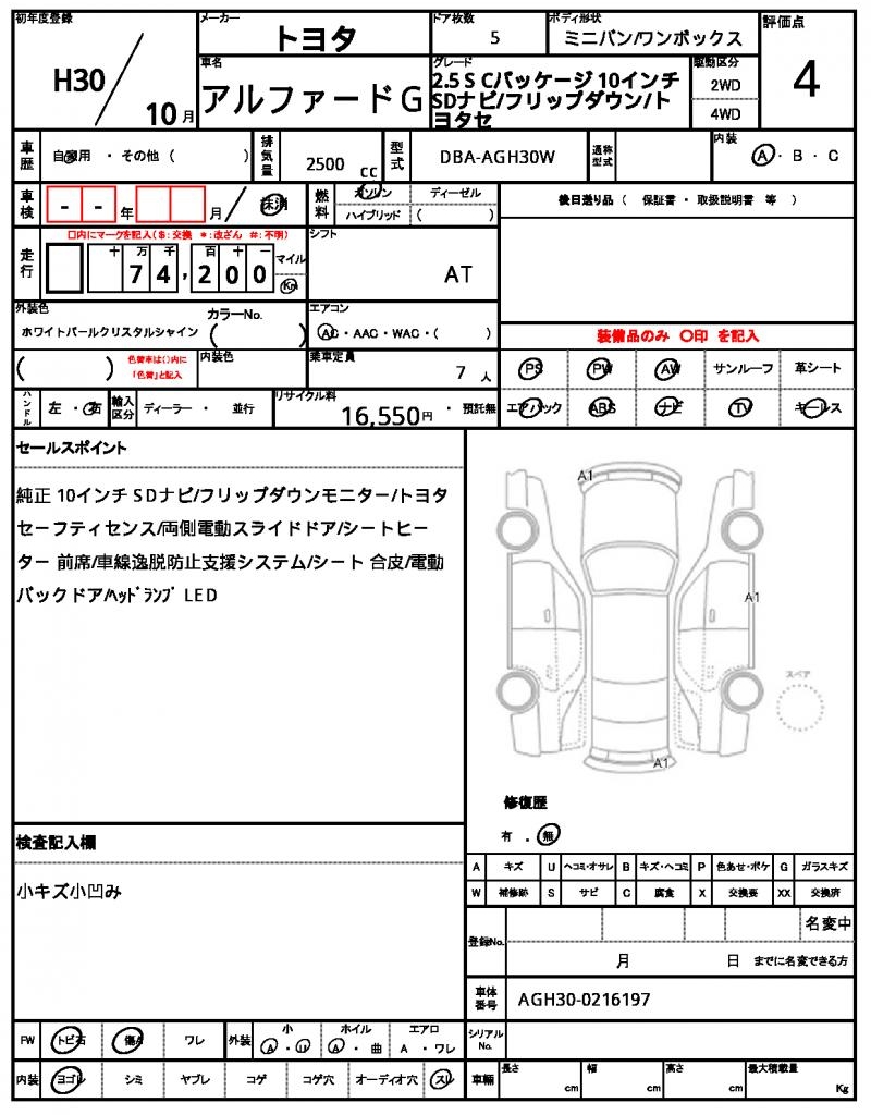 | VIN/Serial No. | AGH30-0216197 |