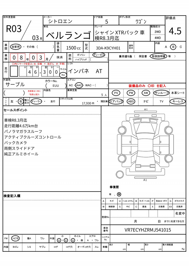 | VIN/Serial No. | VR7ECYHZRMJ541015 |