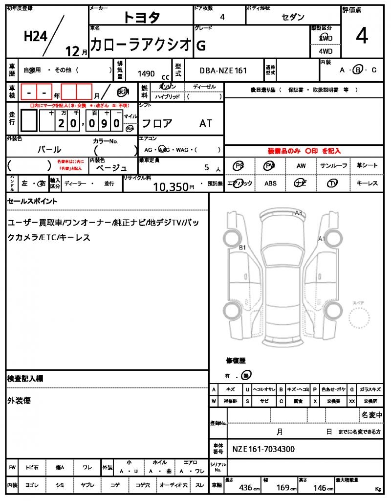 | VIN/Serial No. | NZE161-7034300 |