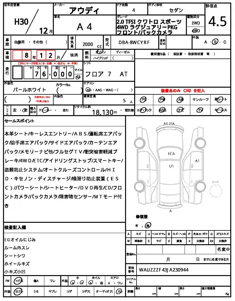 | VIN/Serial No. | WAUZZZF43JA230944 |
