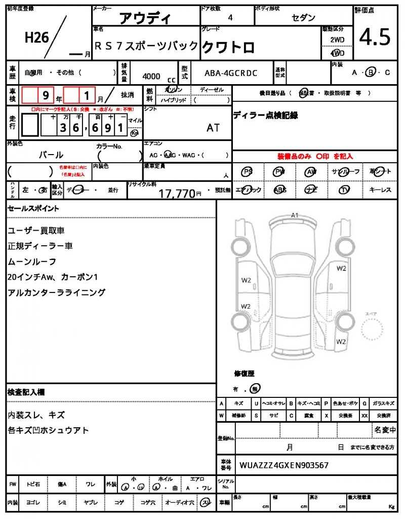 | VIN/Serial No. | WUAZZZ4GXEN903567 |