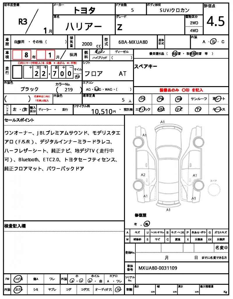 | VIN/Serial No. | MXUA80-0031109 |