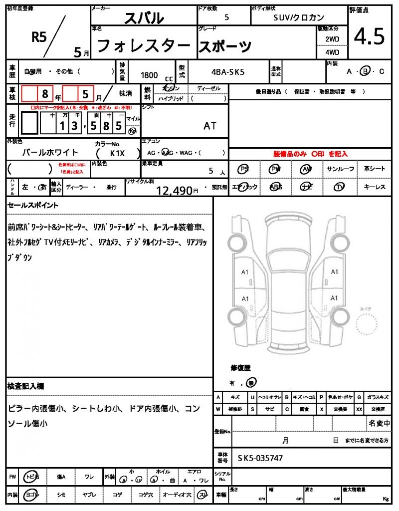 | VIN/Serial No. | SK5-035747 |