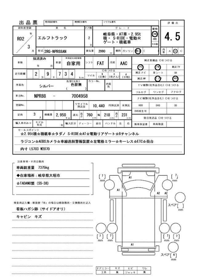 | VIN/Serial No. | NPR88--7004958 |