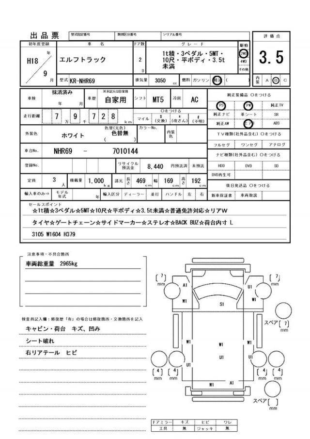 | VIN/Serial No. | NHR69--7010144 |