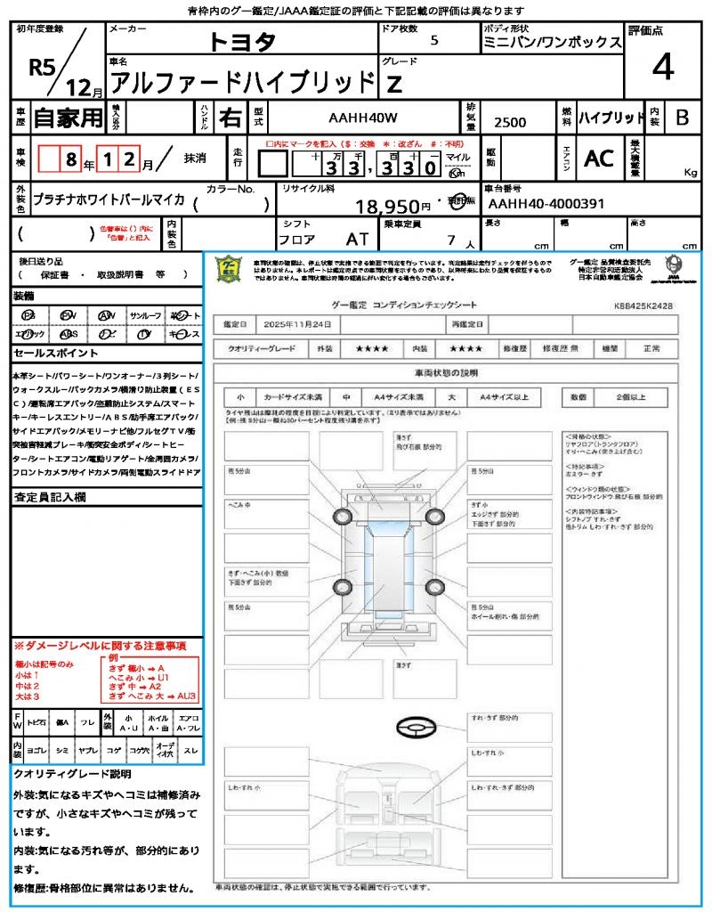 | VIN/Serial No. | AAHH40-4000391 |