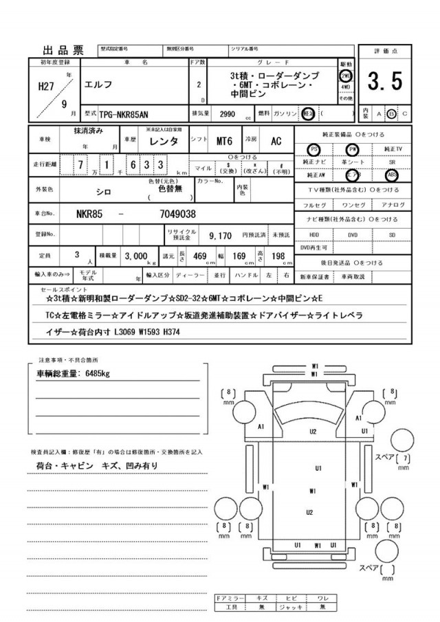 | VIN/Serial No. | NKR-85-7049038 |