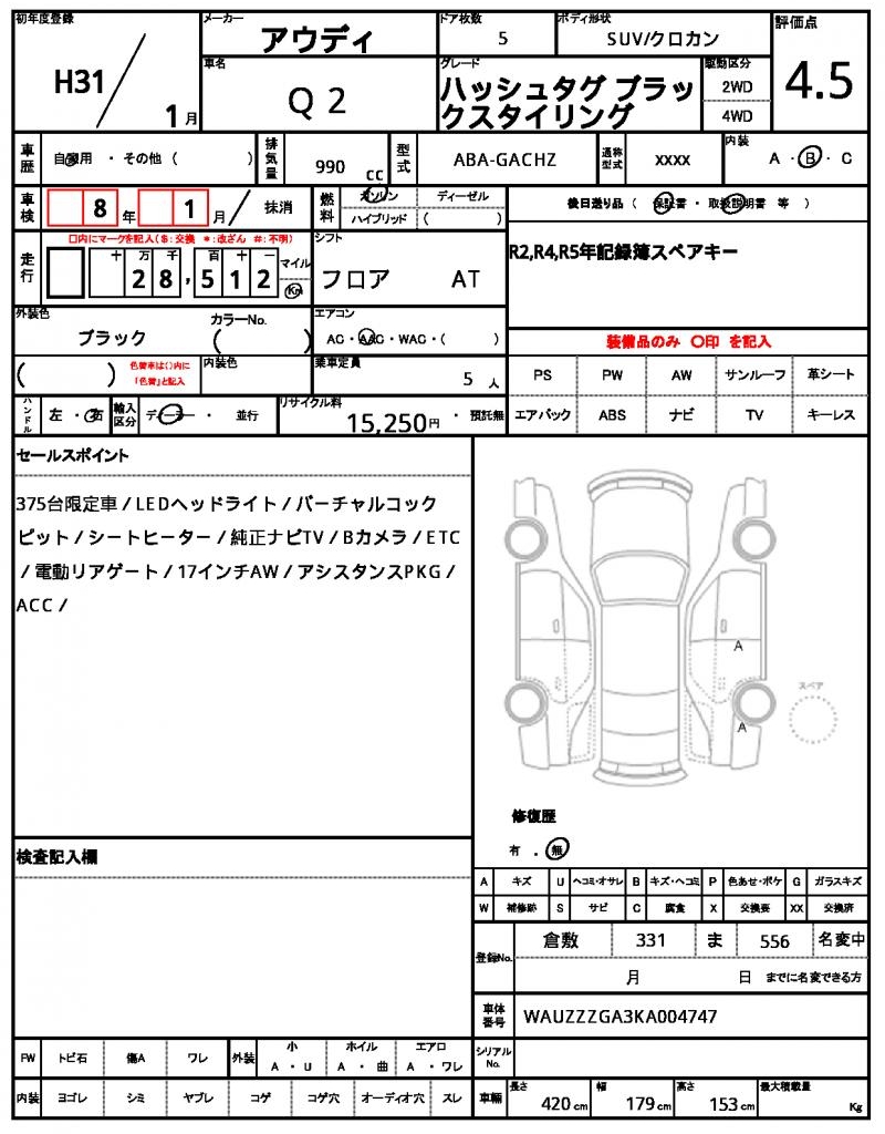 | VIN/Serial No. | WAUZZZGA3KA004747 |