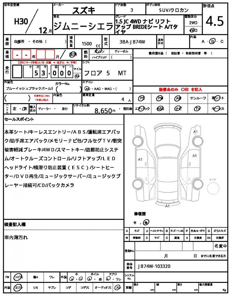 | VIN/Serial No. | JB74W-103320 |