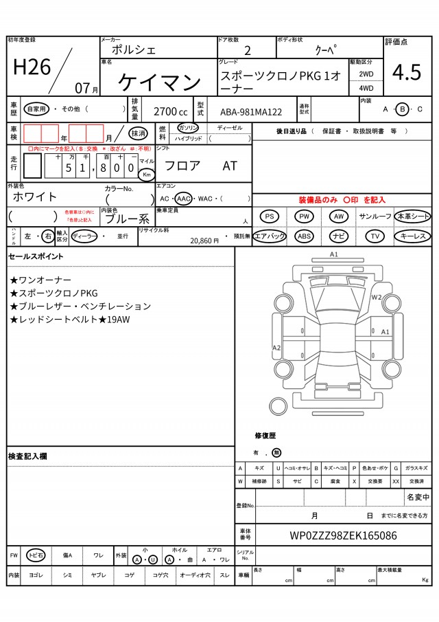 VIN/Serial No. WP0ZZZ98ZEK165086
