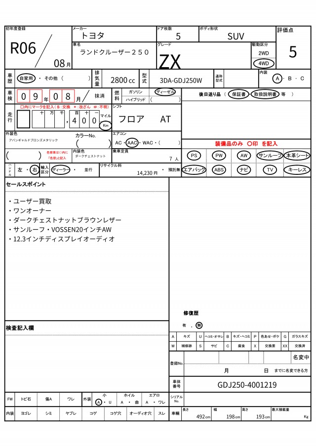 | VIN/Serial No. | GDJ250-4001219 |