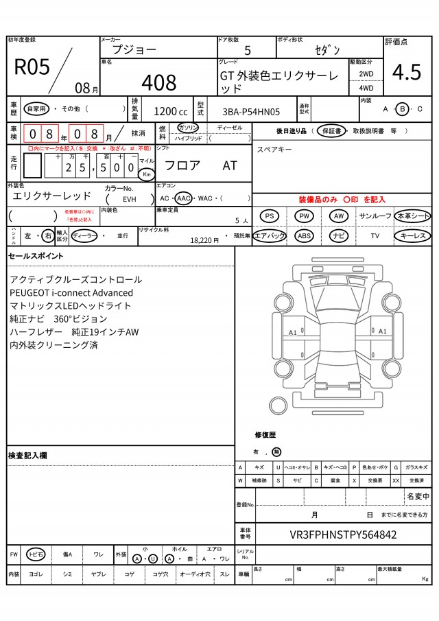 | VIN/Serial No. | VR3FPHNSTPY564842 |