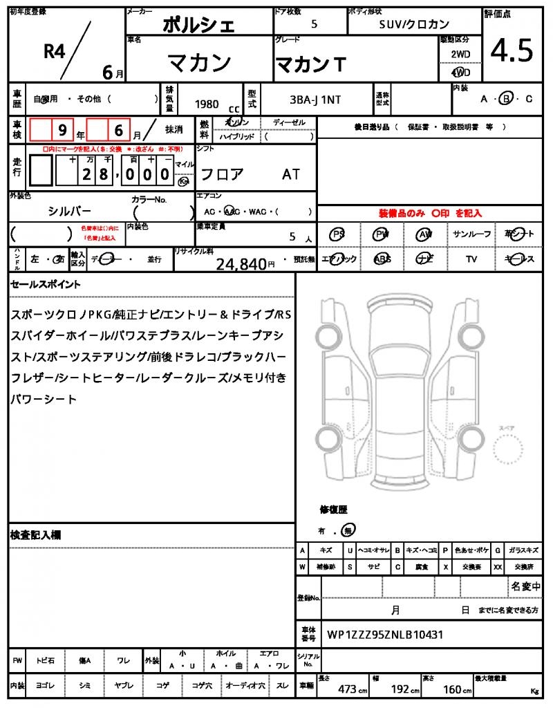 VIN/Serial No. WP1ZZZ95ZNLB10431