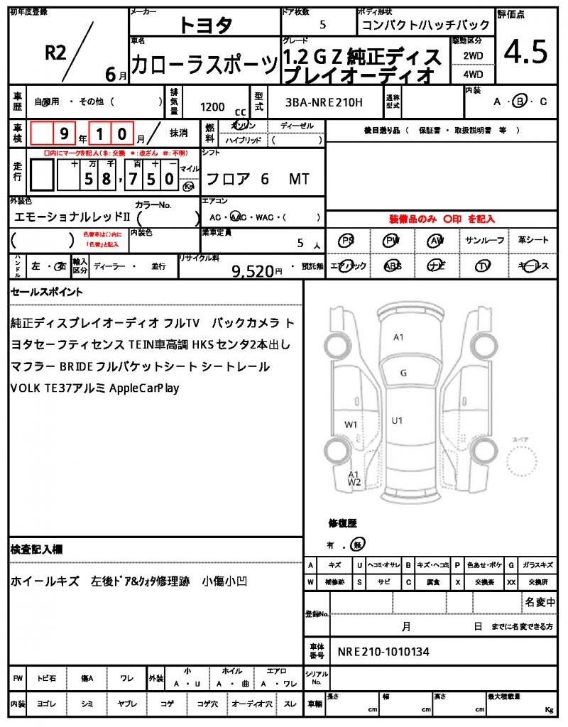 | VIN/Serial No. | NRE210-1010134 |