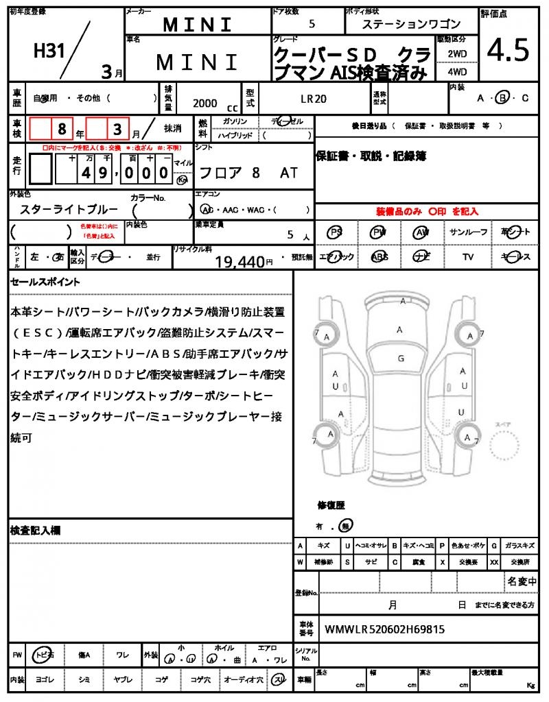 | VIN/Serial No. | WMWLR520602H69815 |