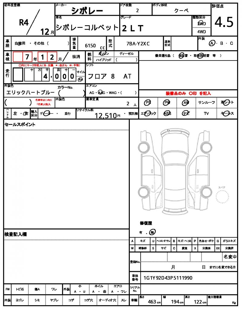 VIN/Serial No. 1G1Y92D43P5111990