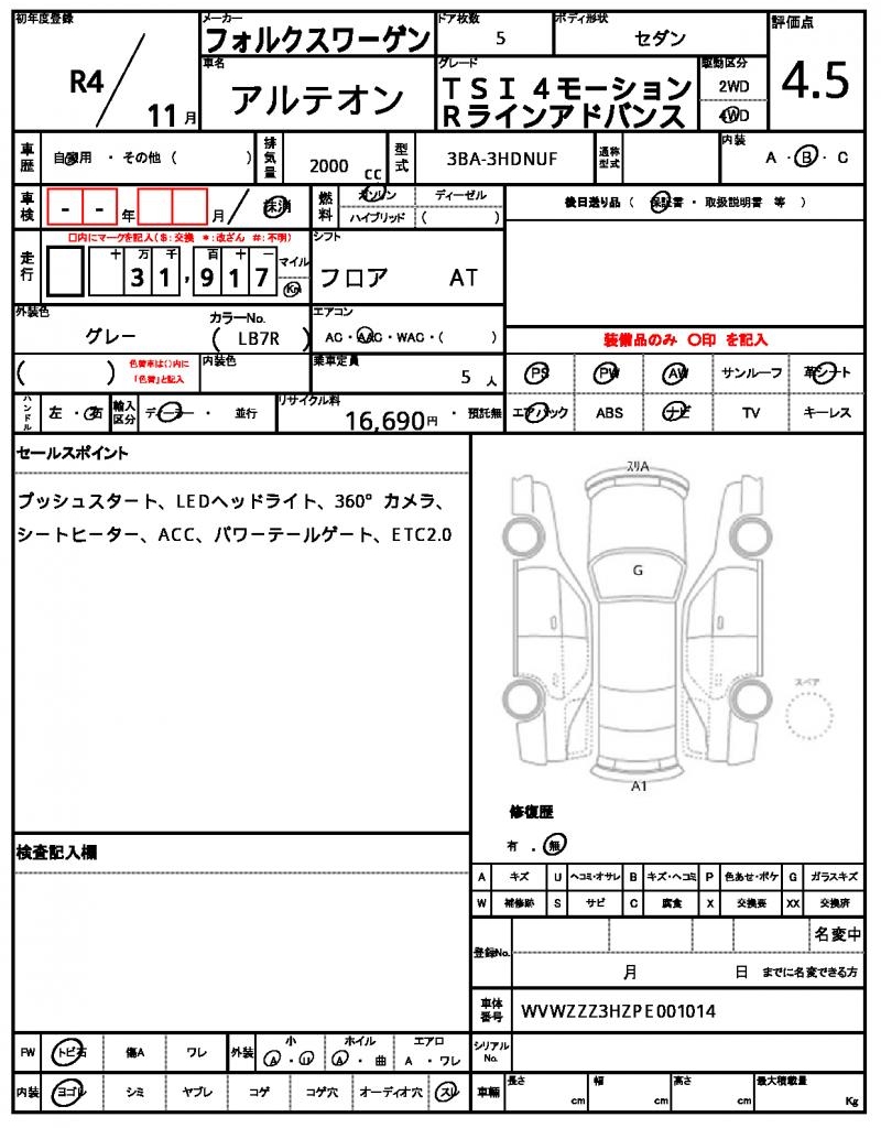 VIN/Serial No. WVWZZZ3HZPE001014