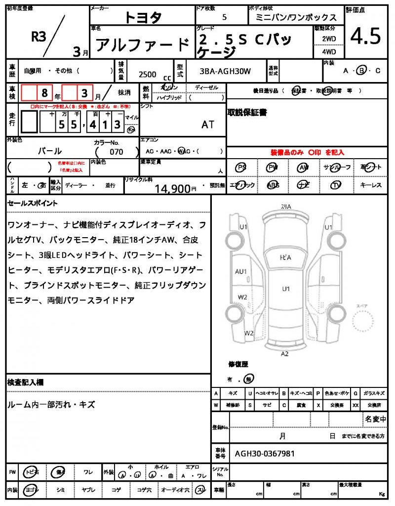 | VIN/Serial No. | AGH30-0367981 |