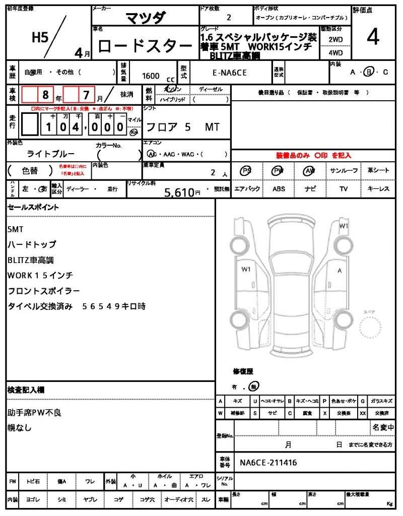 | VIN/Serial No. | NA6CE-211416 |