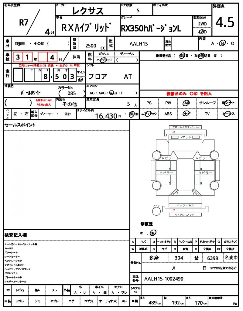 | VIN/Serial No. | AALH15-1002490 |