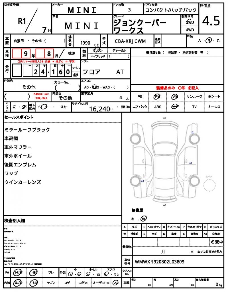 | VIN/Serial No. | WMWXR920802L03809 |