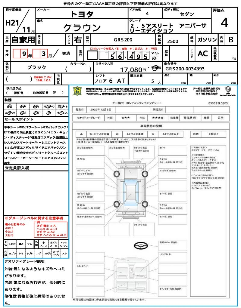 | VIN/Serial No. | GRS200-0034393 |