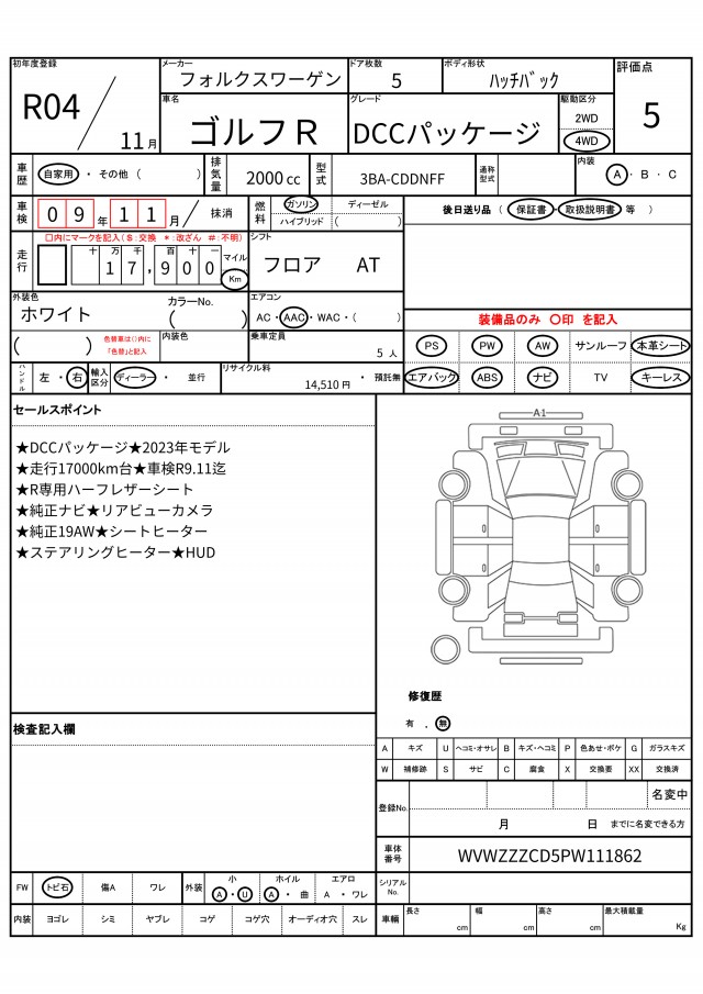 | VIN/Serial No. | WVWZZZCD5PW111862 |