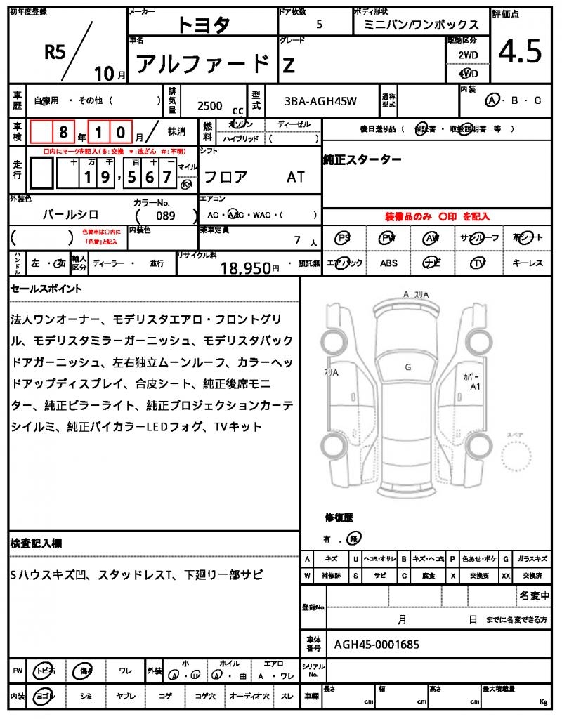 | VIN/Serial No. | AGH45-0001685 |