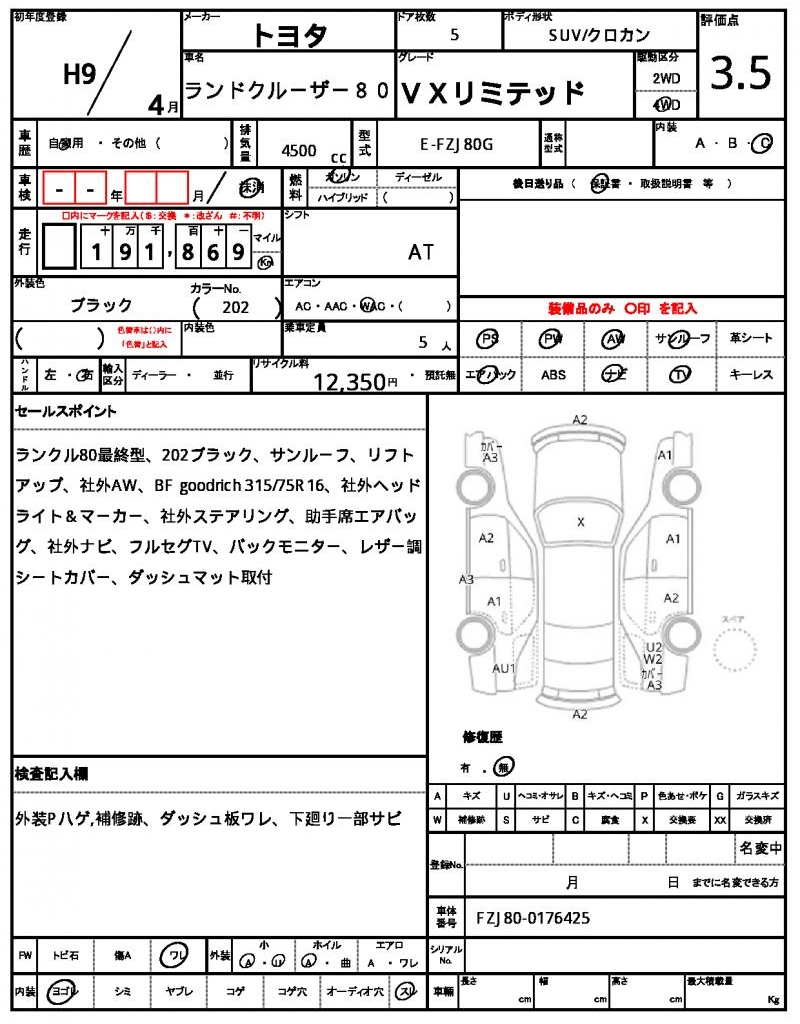 | VIN/Serial No. | FZJ80-0176425 |