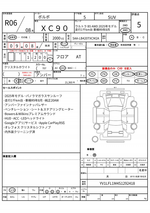 | VIN/Serial No. | YV1LFL1M4S1292418 |