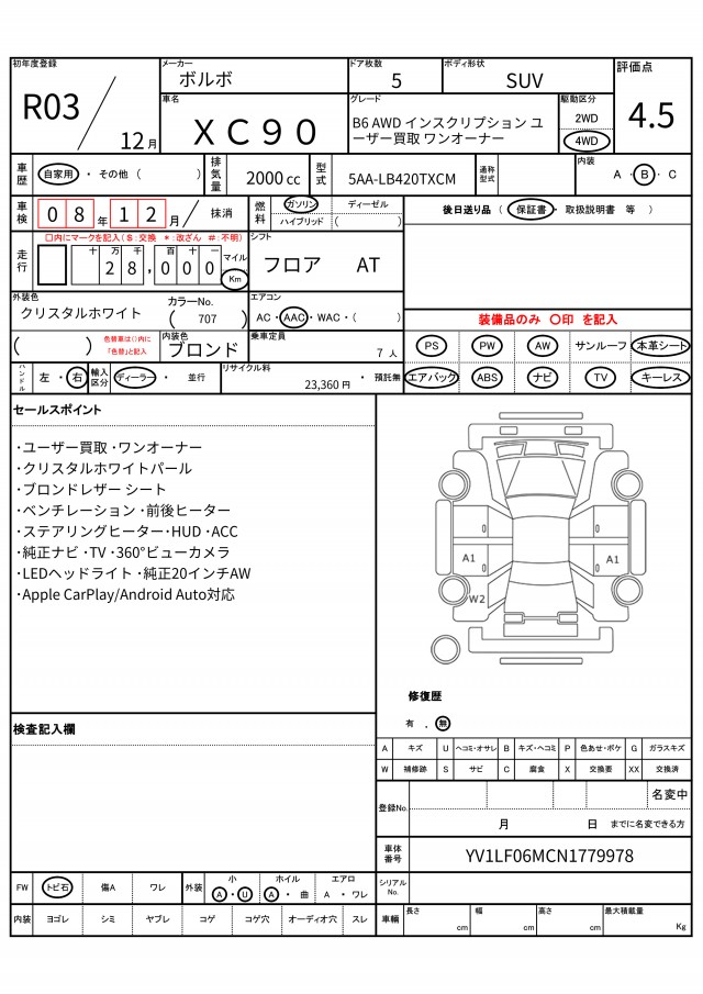 VIN/Serial No. YV1LF06MCN1779978