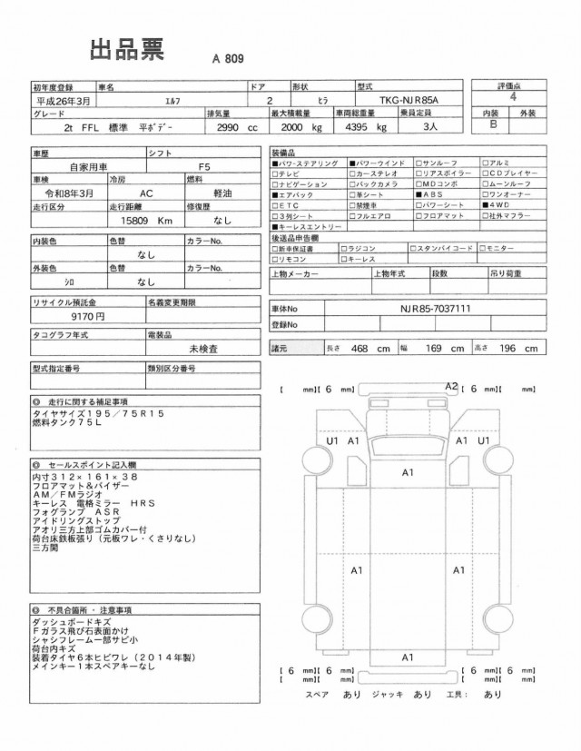 | VIN/Serial No. | NJR85-7037111 |