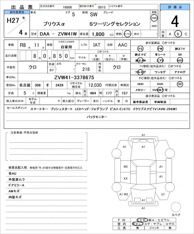 2015 TOYOTA PRIUS ALPHA