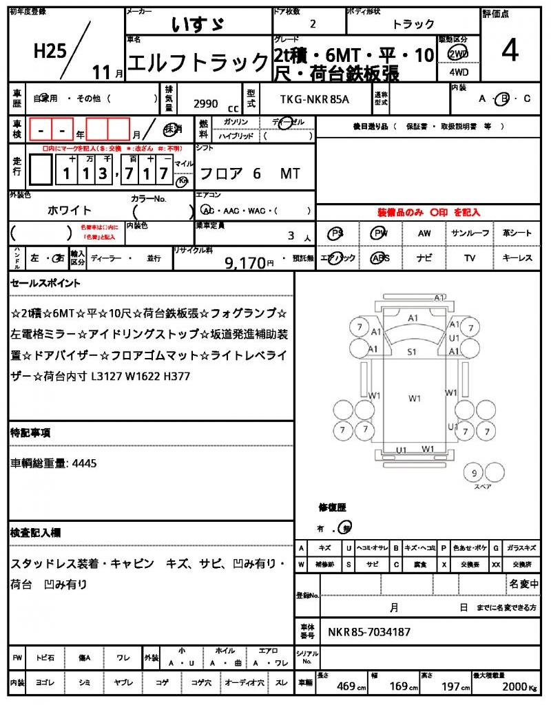 | VIN/Serial No. | NKR85-7034187 |
