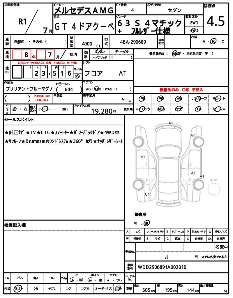 2019 MERCEDES AMG GT 4 DOOR COUPE