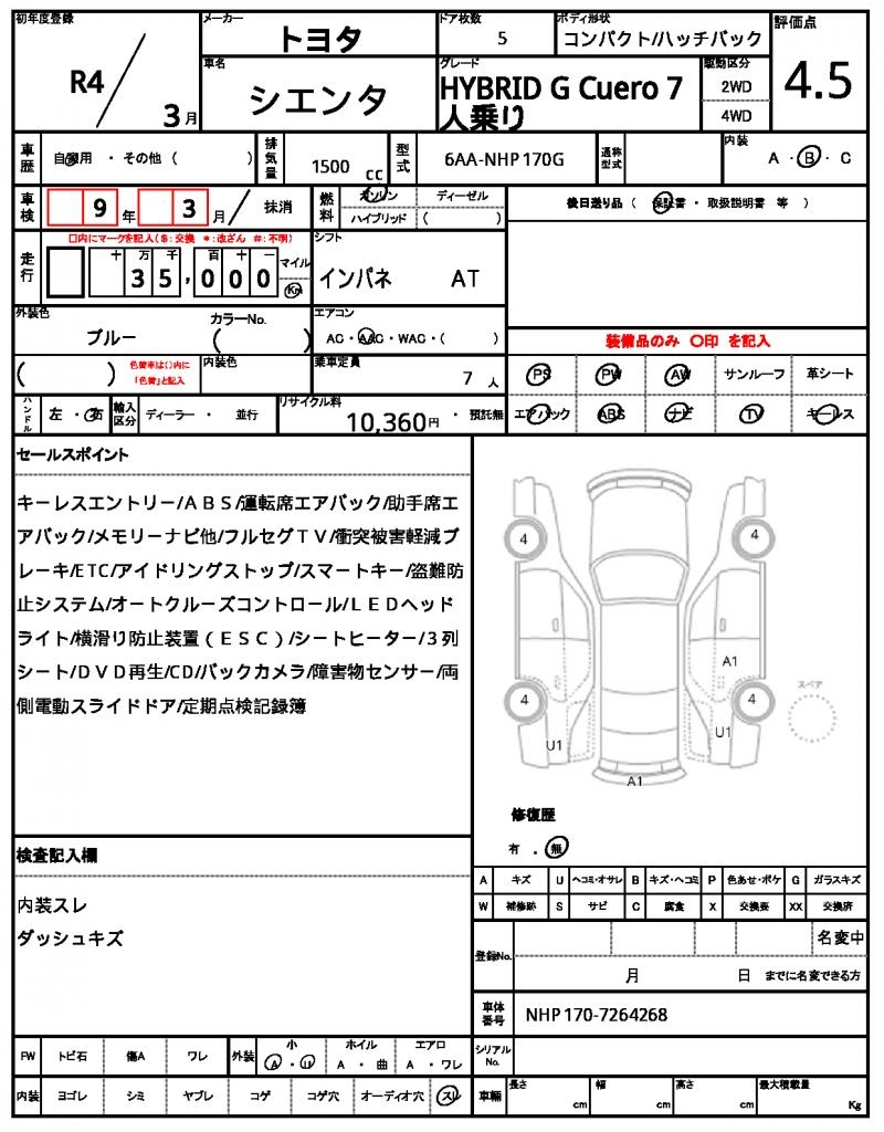 | VIN/Serial No. | NHP170-7264268 |