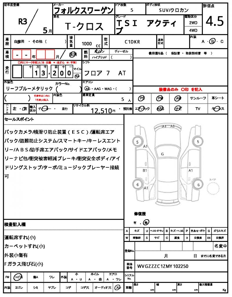| VIN/Serial No. | WVGZZZC1ZMY102250 |