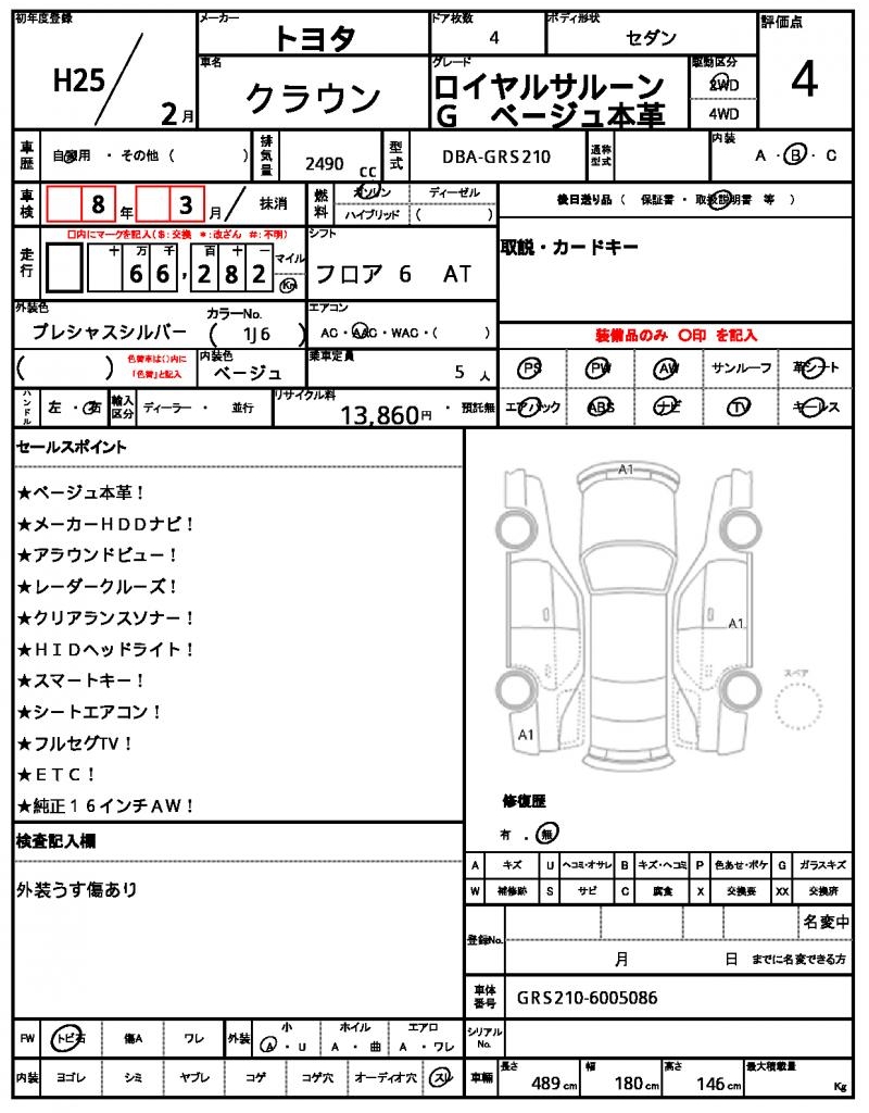 | VIN/Serial No. | GRS210-6005086 |