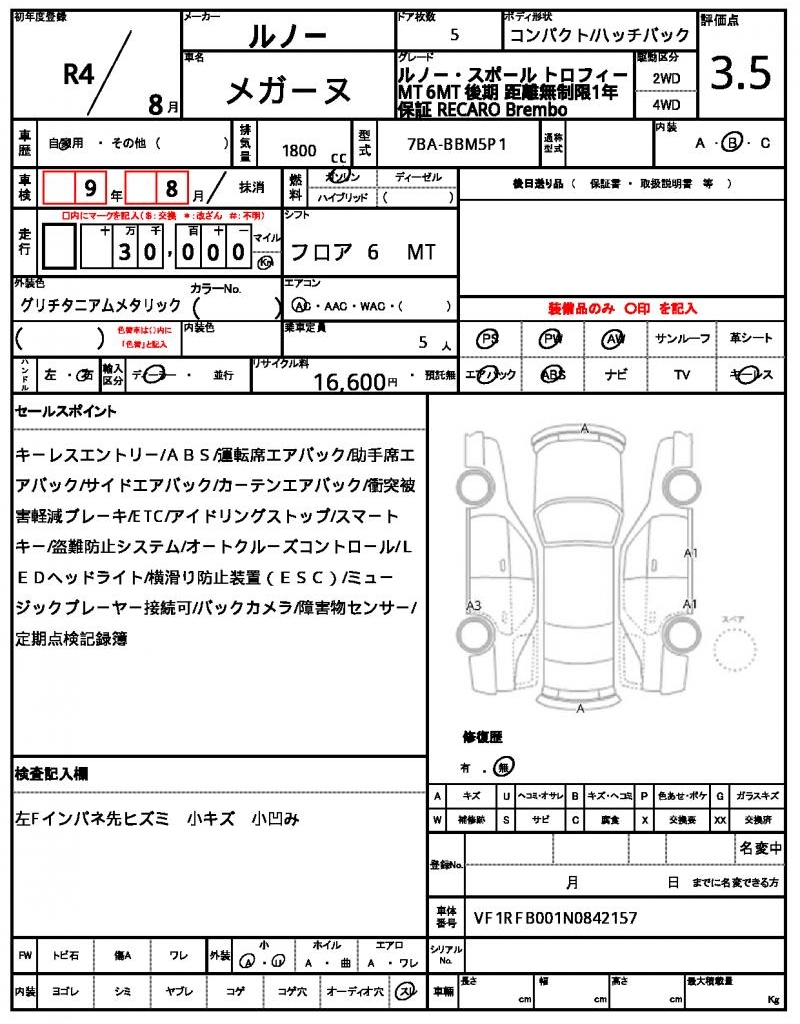 VIN/Serial No. VF1RFB001N0842157