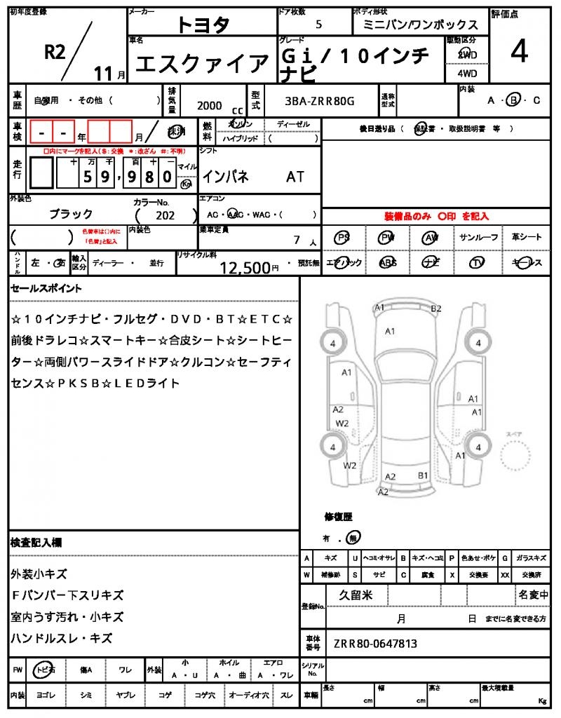 | Model code | 3BA-ZRR80G |