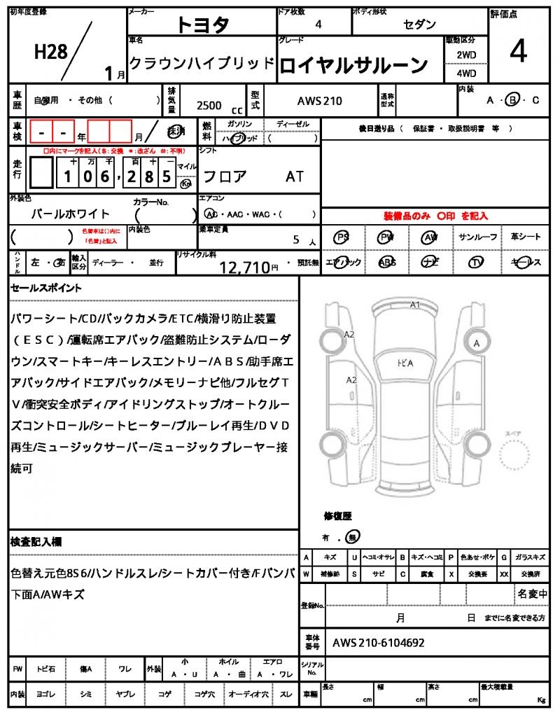 | VIN/Serial No. | AWS210-6104692 |