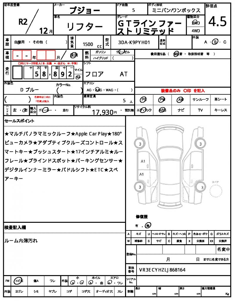 | VIN/Serial No. | VR3ECYHZLJ868164 |