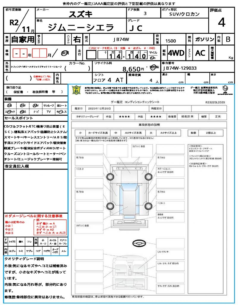 | VIN/Serial No. | JB74W-129033 |