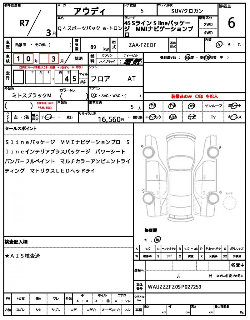 | VIN/Serial No. | WAUZZZFZ0SP027259 |