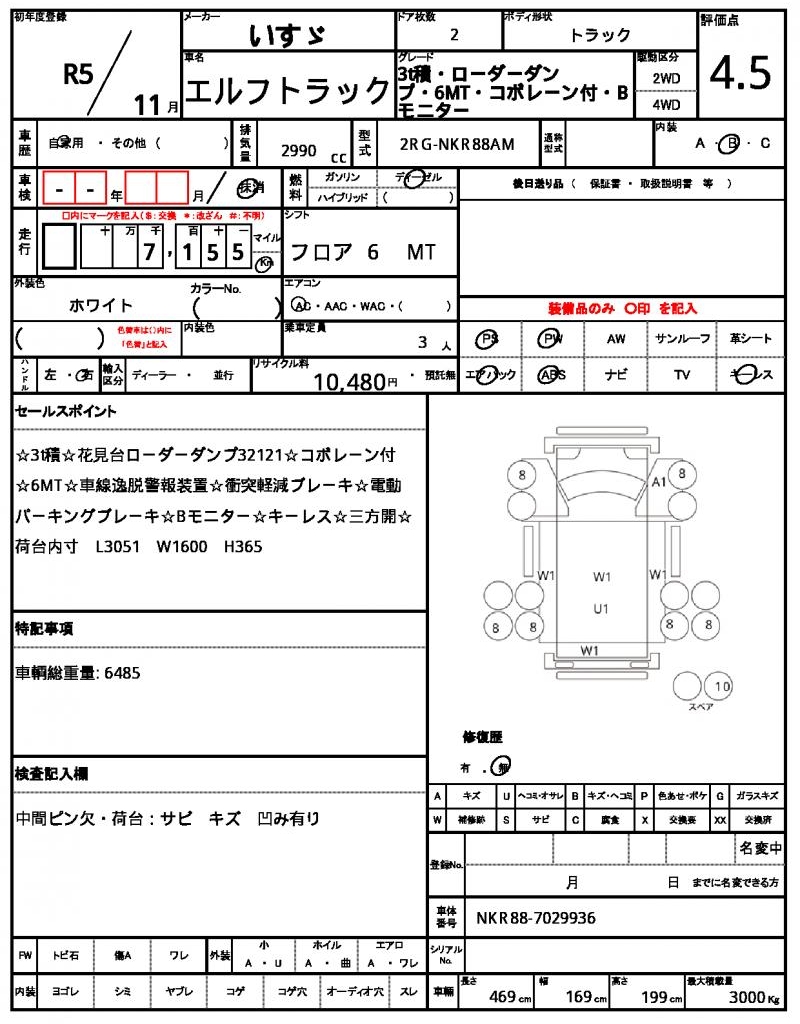 | VIN/Serial No. | NKR88-7029936 |