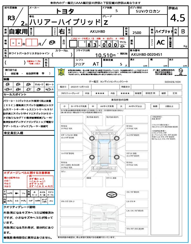 | VIN/Serial No. | AXUH80-0020451 |