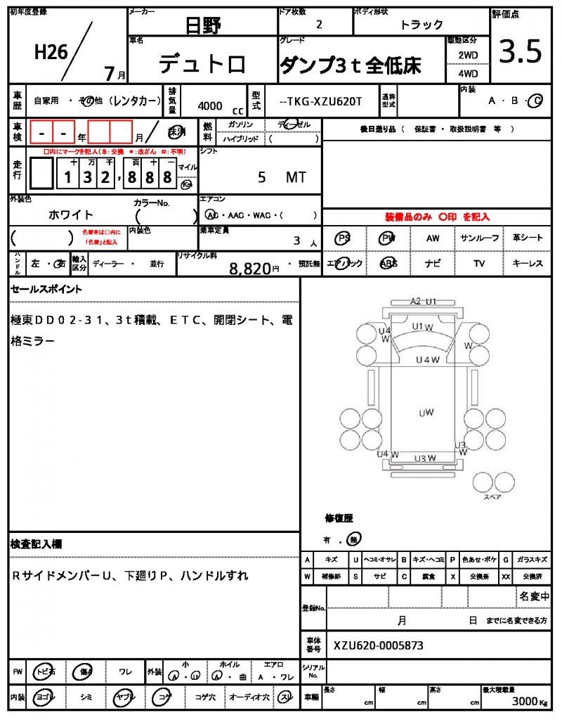 | VIN/Serial No. | XZU620-0005873 |